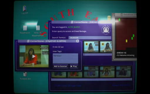 Середина 90-х. Пропал мужчина. Вы – полицейский, у которого есть архив с допросами его жены, разбитый на короткие фрагменты (в них – реальная актриса, а не графика). Вы вводите ключевые слова в поисковую строку полицейского терминала и смотрите ролики, собирая историю по кусочкам.