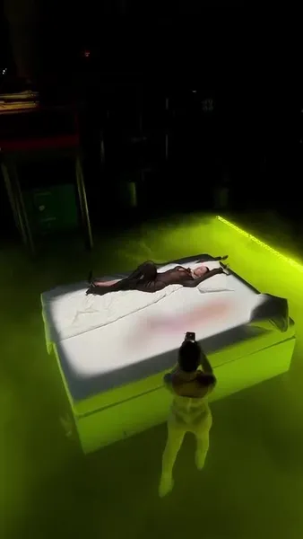 Интерьер вечеринки также соответствовал стилю almost naked: в клубе установили кровать с голограммой Ивлеевой, а на потолке транслировались снимки 100 голых женщин. Сама Настя надела прозрачное платье, кружевное белье и «бриллиант в 23 миллиона рублей».