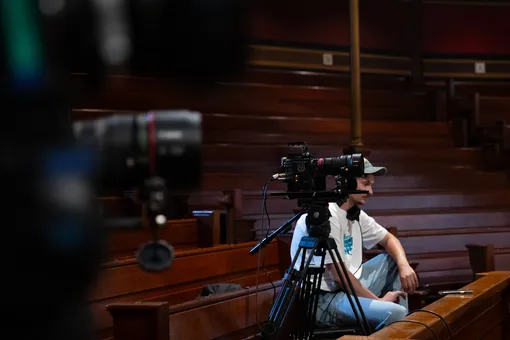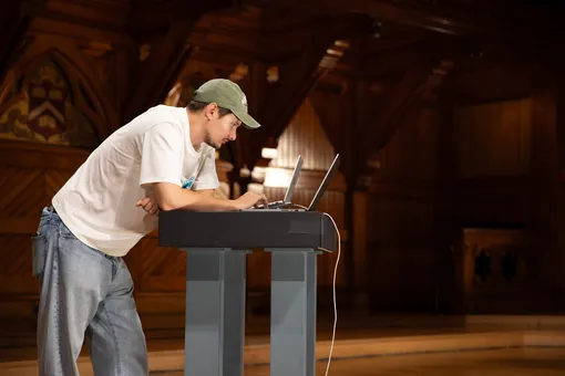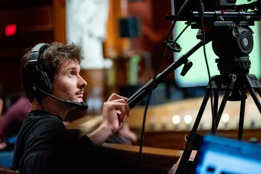 Со временем меня подпустили к нашему главному, флагманскому продакшену — сами осенние лекции CS50 (которые затем распространяются бесплатно в интернете под названием CS50x). Помню, как страшно было впервые садиться за камеру. Три часа беспрерывной, напряженной работы, где нельзя потерять внимание ни на секунду — кто смотрел CS50x, знает, что наш профессор Дэвид Мэлан двигается с молниеносной скоростью, а иногда может выкинуть абсолютно неожиданное движение. С учетом того, что все лекции идут в прямом эфире на ютубе, права на ошибку просто нет.