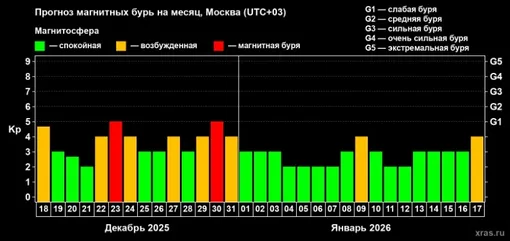 Однако уже в начале следующей недели обстановка вновь начнет ухудшаться. Уже 22 декабря Землю накроет сильный геошторм, который на пике может достичь уровня G1 по шкале NOAA. По предварительным данным, планету будет штормить 3 дня.