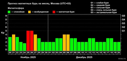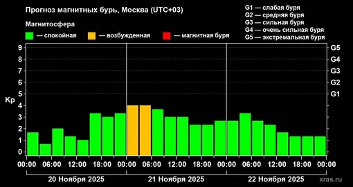 Специалисты предупреждают, что на следующей неделе нас ждут как минимум две магнитные бури. С 25 по 27 ноября прогнозируется серия геомагнитных возмущений.