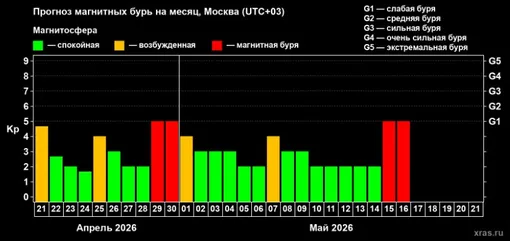 Однако затем ситуация будет постепенно меняться. Уже в субботу начнется рост геомагнитной активности, и Землю может накрыть геошторм. После небольшой передышки в конце месяца последует более серьезное испытание. По предварительным данным, с 29 по 30 апреля на планету обрушится магнитная буря, которая будет бушевать двое суток.