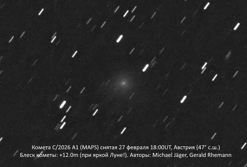 В этот период комета C/2026 A1 (MAPS) станет видна невооруженным глазом, в том числе с территории России. Астрономы не исключают сценария, при котором объект станет заметен даже на дневном небе, что ранее уже фиксировалось в истории наблюдений.