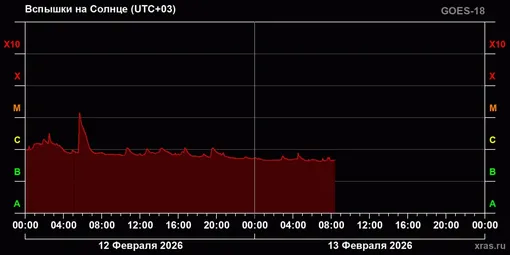 На данный момент признаков нового роста активности не наблюдается. Прогноз космической погоды на 13 февраля оценивается как спокойный. Геомагнитное поле Земли останется стабильным, риск возникновения магнитных бурь в ближайшие сутки минимален.