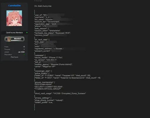 Как утверждает автор поста, он на протяжении последнего года свободно пользовался RCE-уязвимостью в обработке медиафайлов – ее якобы не исправляли с момента выпуска бета-версии приложения. Хакер пообещал выложить часть полученных данных в открытый доступ, если администрация MAX не заплатит ему деньги. В подтверждение своих слов он опубликовал технические данные об аккаунте депутата Госдумы Николая Брыкина.