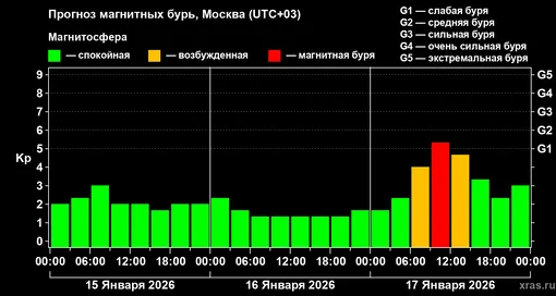 Магнитные бури 15 января 2026