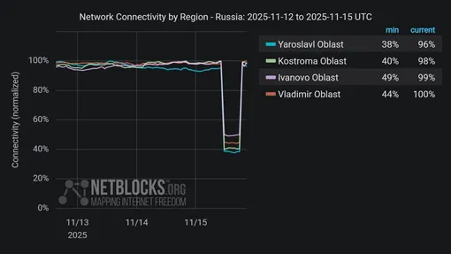 На проблемы чаще всего жаловались пользователи из четырех регионов Центрального федерального округа РФ. Проблемы наблюдались в Ярославской, Ивановской, Костромской и Владимирской областях. Хотя ряд телеграм-каналов писал, что также задело ЯНАО и Краснодарский край.