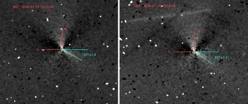 Устойчивость наблюдаемой структуры подтверждается анализом архивных данных. Те же три симметричных джета отчетливо прослеживаются после фильтрации на 24 других изображениях, переданных «Хабблом» в период с 30 ноября, 4, 12 и 27 декабря 2025 года, а также 7 января 2026 года.