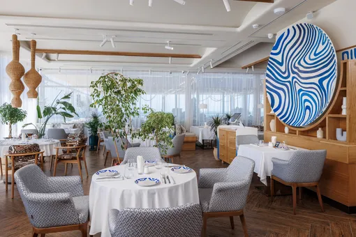 Интерьер в небесно-голубых и песочных тонах с колоритными орнаментами и открытая кухня, где можно наблюдать за магией приготовления, погружают в атмосферу восточного гостеприимства. Богатая винная карта предлагает как легендарные французские шампанские, так и интересные позиции из Узбекистана и Грузии.