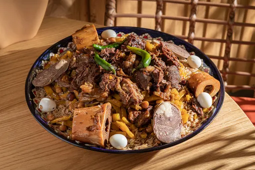 Бренд-шеф Руслан Италмазов собрал в меню калейдоскоп аутентичных вкусов: здесь и нежный вагури, и тающий казан-кабоб, и ковурма лагман, и несколько видов самсы. Секреты для идеальных мясных блюд привезли из Бухары, а лучшие рыбные рецепты — из Хорезма.