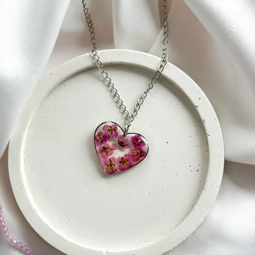 Небольшое изысканное украшение поможет выразить самые теплые чувства. При выборе изделия присмотритесь к кулонам или серьгам ручной работы из эпоксидной смолы в виде сердца. Они ассоциируются с нежностью и романтикой. Каждая деталь в таком украшении уникальна, ведь сухоцветы, полудрагоценные камни, крошечные фигурки и другие элементы внутри никогда не повторяются.