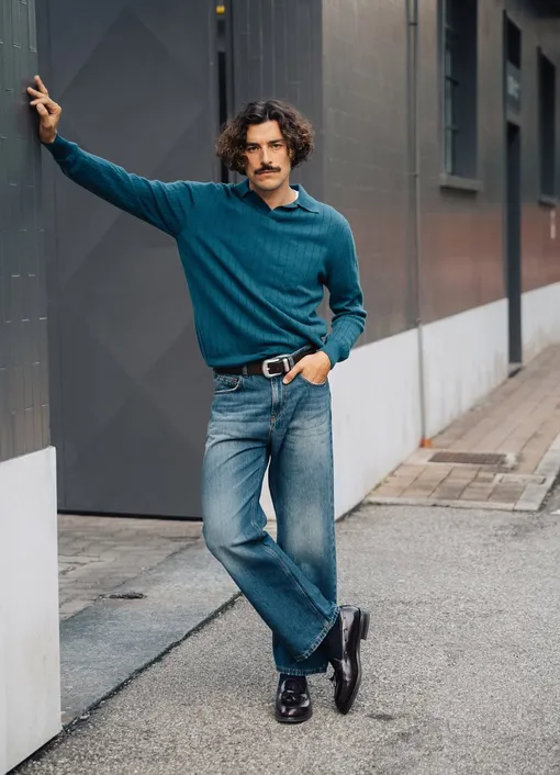 Длина тоже имеет значение. Джинсы, которые собираются в складки у основания ботинок, выглядят неаккуратно, а слишком короткие — нелепо. Стремитесь к плавному изгибу, чтобы ткань слегка прикрывала ботинок. И не забывайте о посадке. Джинсы со средней посадкой смотрятся более естественно, чем с низкой, а свободный крой в области бедер помогает создать аккуратный силуэт.