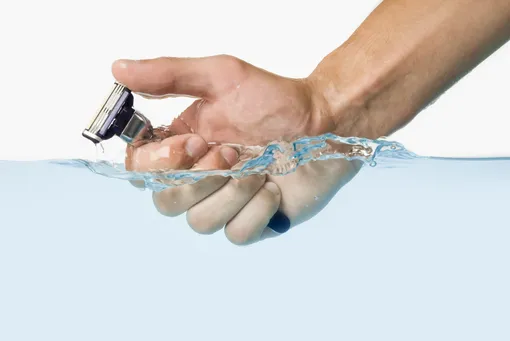 Во-вторых, брейтесь по росту волос, а если нужен идеальный результат — второй проход делайте перпендикулярно, а не против роста, поскольку это снижает риск вросших волос. На сложных участках слегка натягивайте кожу — но делайте это мягко, чтобы не травмировать ее. Используйте короткие, легкие движения, регулярно промывая лезвие.
