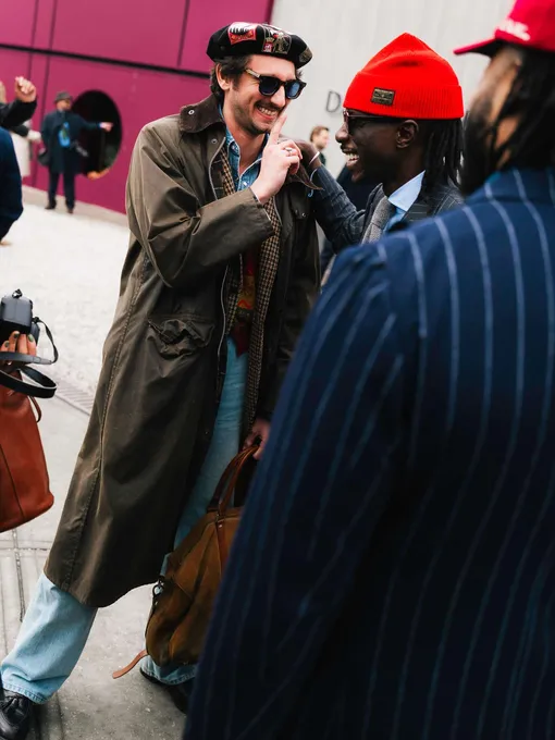 Надеть худи поверх рубашки с галстуком, а сверху накинуть классическое пальто, носить бейсболку с элегантным тренчем, — да, не самые оригинальные, но по-прежнему рабочие приемы.