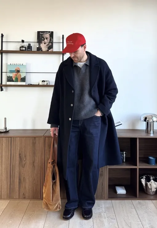 Кепка нужна не только для того, чтобы защищать от холода (а мартовский ветер, как известно, может быть очень коварным), но и чтобы оживить классический образ в темно-синих тонах. Другой аксессуар, без которого не обойтись этой весной, — объемная вместительная сумка.