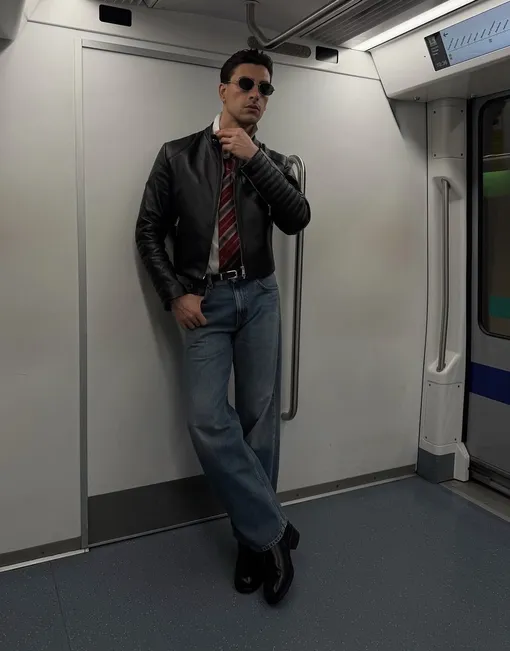 Джинсы и кожаная куртка