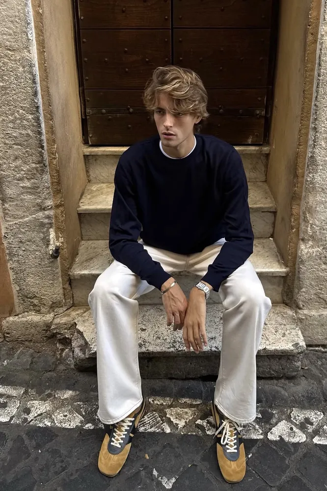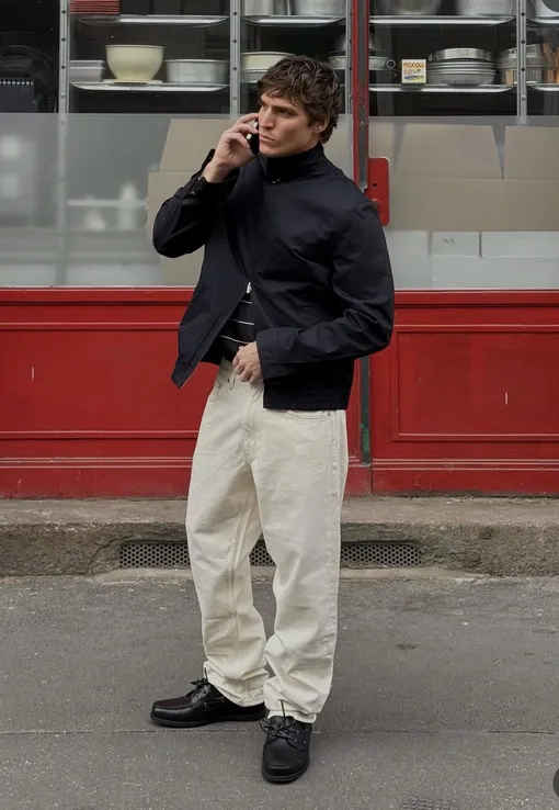 Белый, как известно, самый маркий цвет на свете: если вы собираетесь регулярно ходить в таких джинсах, будьте готовы отправлять их в стирку через каждые 2-3 носки (кстати, рекомендуем присмотреть специальное средство для стирки белых вещей). Это относится именно к белоснежным, кипенно-белым моделям, но у них есть и альтернатива — более мягкие кремовые оттенки, которые смотрятся не менее впечатляюще, а пачкаются медленнее. Затем переходим к крою — и здесь вам тоже есть из чего выбирать. Единственное, чего мы настоятельно рекомендуем избегать, — это узкого кроя в стиле двухтысячных: как мы рассказывали недавно, этот фасон (к счастью) не вернется в моду еще долго. Оптимальный вариант — джинсы или брюки прямого и широкого кроя, средней или заниженной посадки, если вам нравится раслабленный стиль. Элегантно смотрятся слегка укороченные модели.