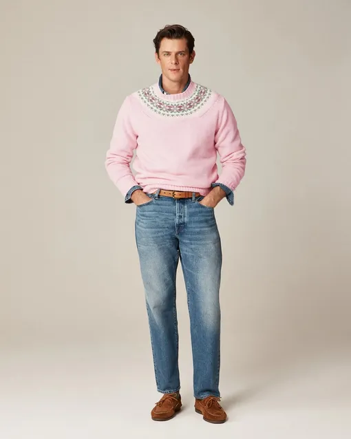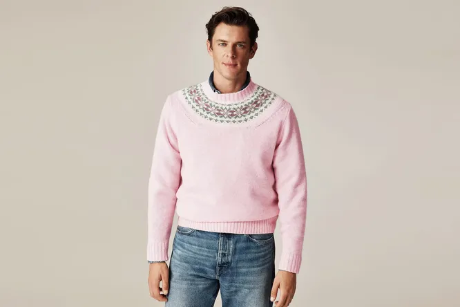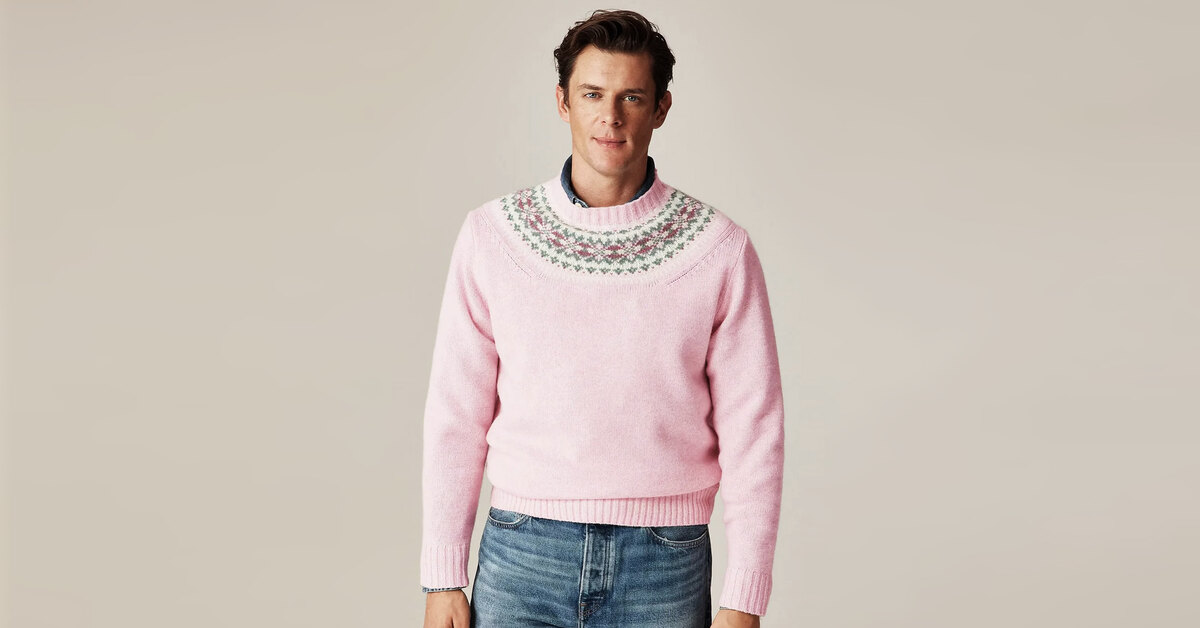 Все началось с невинного предмета гардероба: мужского джемпера от классического бренда J.Crew. Это обычный шерстяной джемпер с узором Fair Isle (традиционная шотландская техника вязки), но выполненный в розовых тонах.