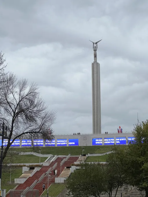 Еще один символ города на Волге — монумент Славы на одноименной площади. На демоверсии нижегородской Чкаловской лестницы (конечно, ступеней тут намного меньше) меня ждала первая неудача — в попытках снять вид на Волгу я выронил смартфон, и он, несколько раз познакомившись с местной плиткой, поскакал вниз вперед меня. К счастью, HONOR X9d прошел проверку на прочность — даже царапин не осталось. Да и по заряду к середине второго дня путешествия у него все в полном порядке — увидев на экране 63%, я наконец оказался на набережной.