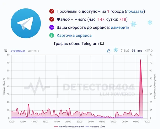 Утром 13 января российские пользователи мессенджера Telegram столкнулись с масштабными техническими трудностями. Сервис DownDetector зафиксировал резкий рост числа жалоб на работу платформы начиная с 08:47 по московскому времени.