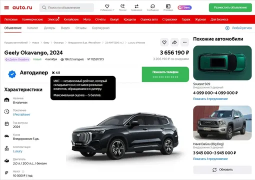 Таким образом, итоговый балл дилера будет формироваться не только на основе отзывов реальных клиентов, но и с учетом точности и полноты данных, которые продавец указывает в карточках транспортных средств.
